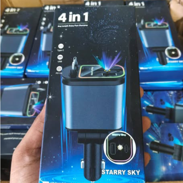 Upgrade your driving experience with this powerful and stylish 4 in 1 Car Phone Charger. Designed for convenience, speed, and aesthetics, it lets you charge multiple devices while adding a premium atmosphere to your car interior.