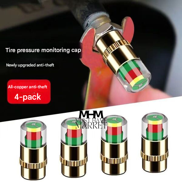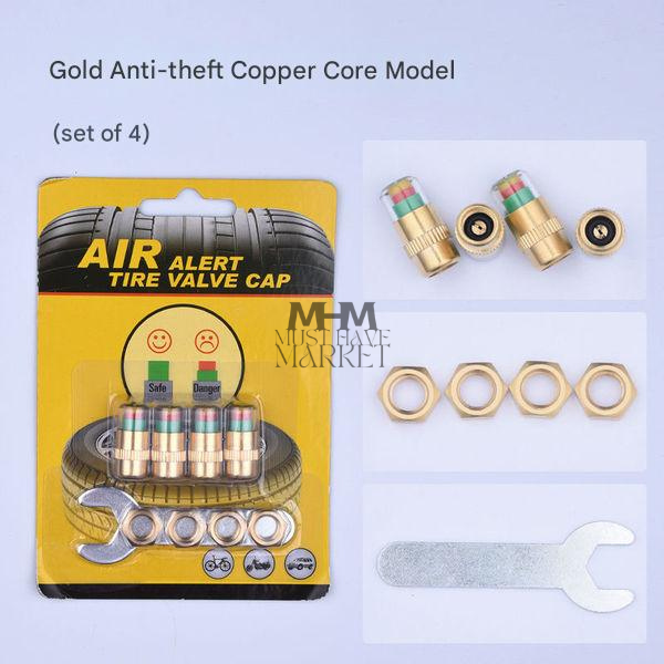Tire Pressure Indicator Valve Stem Caps (3‑Color Air Alert) – Anti‑Theft Copper Core