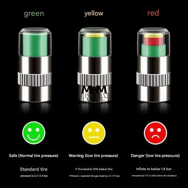 হলো একটি 3-Color visual tyre/tire pressure indicator—টায়ারের valve stem এ লাগালেই রঙ দেখে air pressure বুঝতে পারবেন।