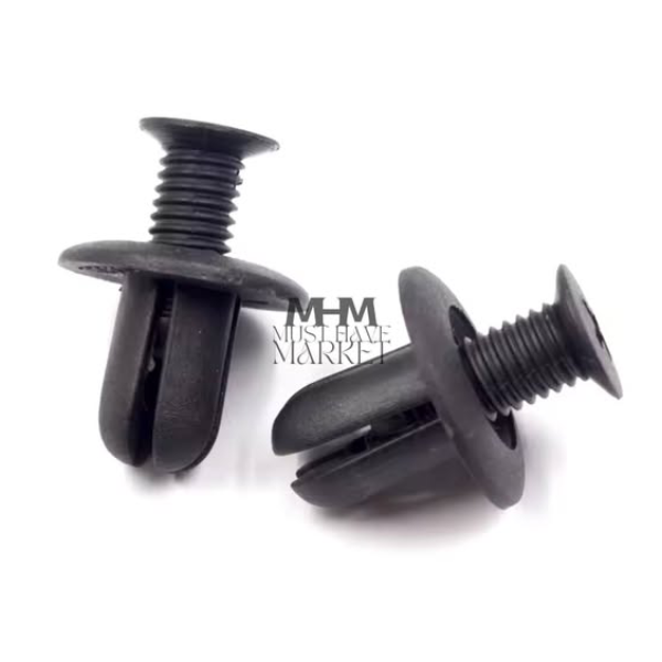 👉 1 Pack এ আছে মোট 30 Pcs Car Push Type Screw Rivet Clips. Secure your vehicle panels with screw-type expanding plastic rivets (also searched as push rivets / trim clips / bumper clips). Ideal for bumper, fender liner, splash shield, undertray, grille, and trim panels. Easy to install—insert the clip, then tighten the Phillips screw to expand and lock.