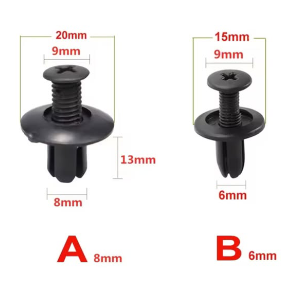 Universal Car Plastic Screw Rivet Retainer Clips (6mm / 8mm Hole) – Bumper, Fender Liner & Trim Panel Fasteners